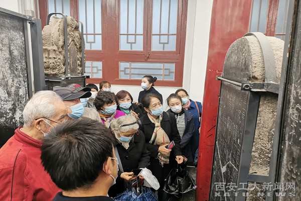 西安碑林博物馆党委书记周萍对各位老教授的到访表示热烈欢迎,感谢大家为碑林博物馆助力,希望双方常来常往,共同“挖掘碑林文化,讲好碑林故事”。副馆长张云声情并茂地就碑林馆的历史背景、发展变化以及展陈文物的价值等作了详细介绍。我校离退休党委书记朱海莹表达了学校老教授们热爱中国书画艺术这一中华优秀传统文化,并不断在学习实践中挖掘中华优秀传统文化蕴含的思想观念、人文精神、道德规范。