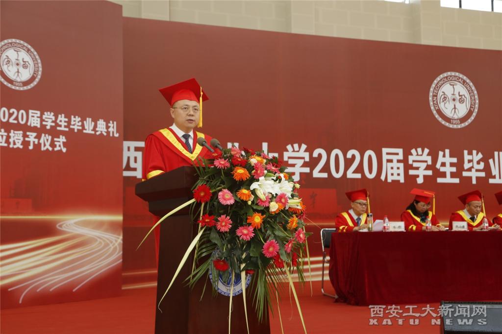 (本网讯)7月20日上午,西安工业大学2020届学生毕业典礼暨学位授予仪式在未央校区体育馆举行。5242名毕业生与教师、校友、家长,齐聚“云端”,共同见证毕业生们掀开人生新篇章,开启新的人生征程。