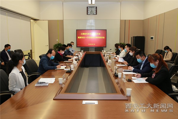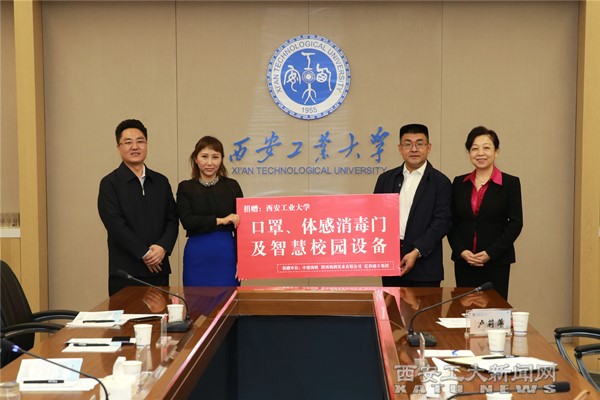 座谈会上,三秦助托教育公益委员会与西安工业大学进行了防疫物资捐赠仪式。此次三秦助托教育公益委员会向我校捐赠了6个体感检测门和1万个医用口罩。双方均希望后续加强合作,共谱校企合作发展的新篇章。