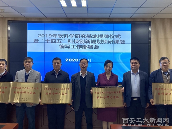 (本网讯)4月24日上午,2019年软科学研究基地授牌仪式暨“十四五”科技创新规划预研课题编写工作部署会在陕西省科技资源统筹中心举行。陕西省科技厅副厅长赵怀斌、政策法规处处长王军、陕西省科学技术情报研究院院长张薇,我校校长雷亚萍、经济管理学院院长苏兵出席授牌仪式。