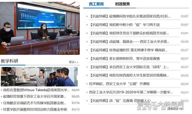 在抗击新冠肺炎疫情这个没有硝烟的战场上,西安工业大学牢牢把握舆论宣传主动权,守好主阵地,用大宣传激发战“疫”力量、连通师生情感、筑牢健康防线。