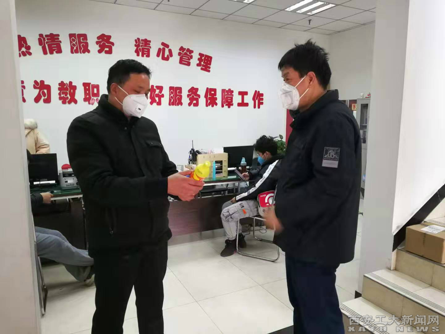 2月8日上午,校医院分2组对两校区工作防控进行技术指导,未央校区由贾应应院长带队,金花校区由王丽副院长带队,对未央校区东门、西工新苑北门、南门,金花校区东家属院等门卫值班情况、出入人员登记情况及消杀情况进行业务督导。根据西安市新冠肺炎疫情防控办公室的有关精神,对消毒液的配置比例、喷洒进行业务指导。