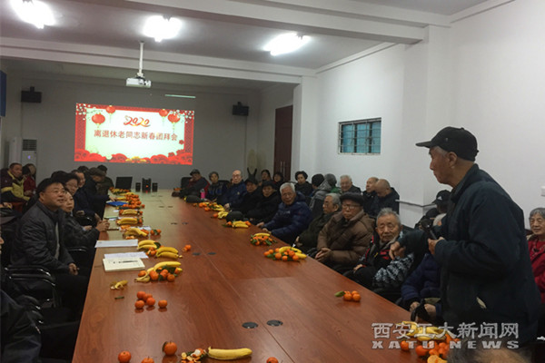 (本网讯)1月6日下午,西安工业大学离退休老同志2020年新春团拜会在金花校区举行。校党委书记刘卫国、校长雷亚萍、副校长刘发林出席团拜会。党办校办、党委组织部、离退休处等部门主要负责人,离退休老同志60余名代表参加。团拜会由离退休党委书记朱海莹主持。