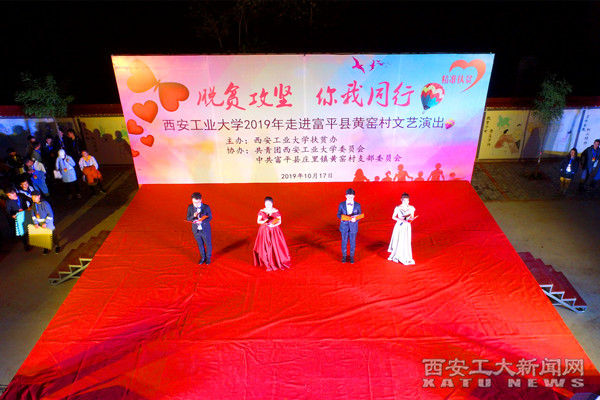 当晚,由学校扶贫办主办,团委承办的“脱贫攻坚,你我同行”西安工业大学2019年走进黄窑村文艺演出,让全体村民拍手叫好。