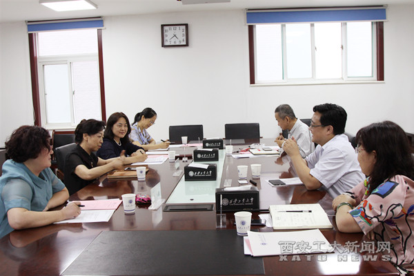 (本网讯)6月27日,省教育厅对外合作与交流处处长文通来我校对接第九届世界大学女校长论坛相关事宜,校长雷亚萍、副校长刘卜、总会计师段小存出席对接会。