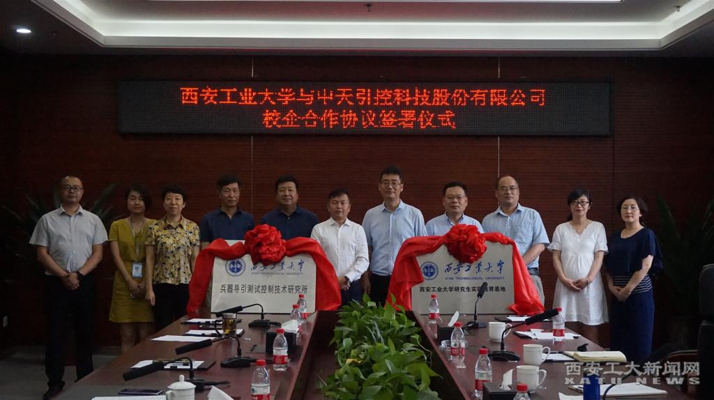 (本网讯)6月19日下午,西安工业大学与中天引控科技股份有限公司举行校企合作全面战略协议签署及双方共建“兵器导引测试控制研究所”和中天引控科技股份有限公司“西安工业大学研究生教育基地”揭牌仪式。仪式在中天引控科技股份有限公司举行。