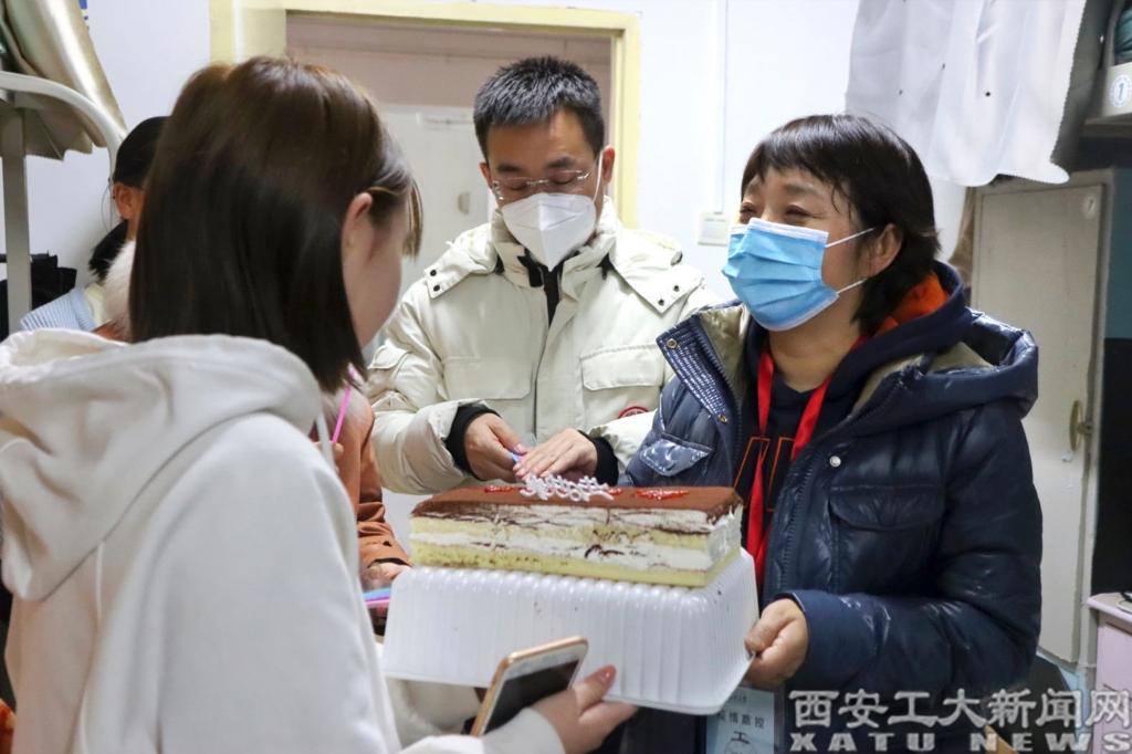 (本网讯)2022年1月1日晚,西安工业大学新生院党委书记、院长刘改琳,党委副书记姬洪波带领三名辅导员老师深入学生宿舍,为当天满18周岁的同学庆祝生日。