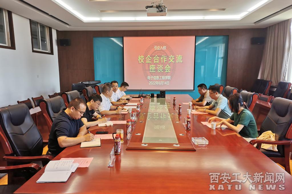 (本网讯)为扎实做好书记校长访企拓岗促就业专项行动,促进毕业生高质量就业,6月14日,电信学院在工5-404召开引企入校座谈会。西安工业大学党委副书记王军周,电信学院党委书记易超、副院长陈超波、党委副书记王利军,埃笛士测量系统有限公司副总经理郭瑞、西安艾达电子科技有限公司行政总监祁冬、西安昆奇网络科技有限公司HR刘云,毕业班辅导员参加会议,电信学院党委书记易超主持。