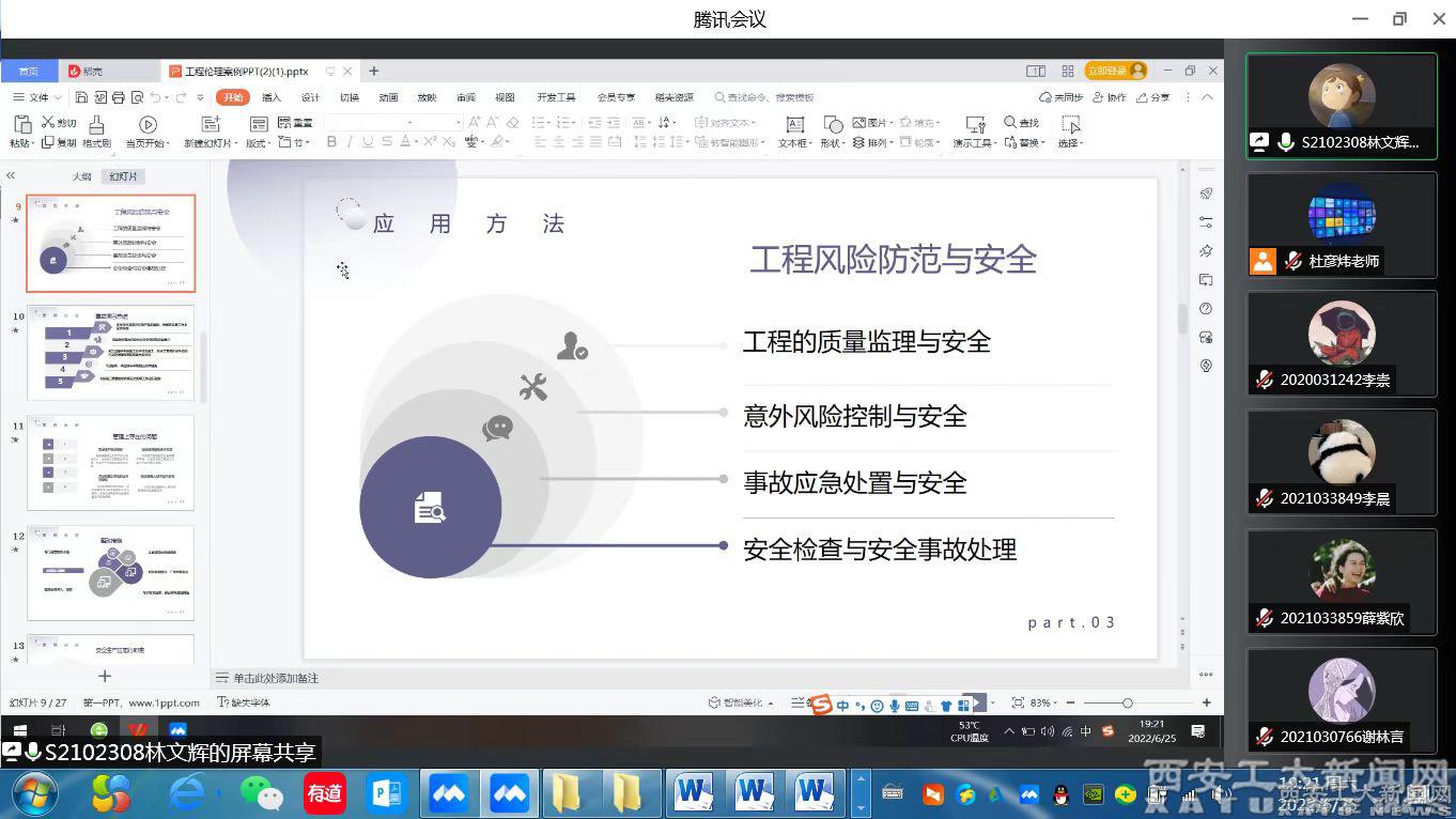 (本网讯)4月至6月,西安工业大学举办第一届工程伦理案例大赛。大赛旨在落实新生院“一课一赛”的课程改革举措,加深高校学生对工程伦理知识的理解和应用,提高大学生的工程伦理意识,促进工程伦理课程的教育教学改革,进而提高企业、社会对工程伦理的认知程度,深化工程伦理在企业的推广应用。