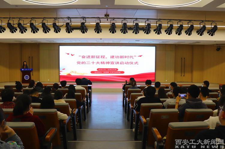 (本网讯)3月7日,我校大学生宣讲团在图书馆报告厅开展了“奋进新征程建功新时代”党的二十大精神宣讲启动仪式。党委宣传部部长刘建兵、校团委书记王守民出席了本次启动仪式。启动仪式由宣传部副部长冯婷主持,宣讲团成员及其他百余名同学参加了本次活动。