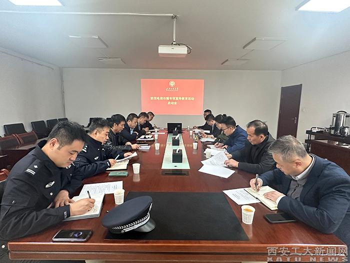 余俊传达了《西安工业大学防范电信诈骗专项宣传教育活动方案》,对落实防范电信诈骗专项宣传教育活动的具体任务和责任分工进行了明确。