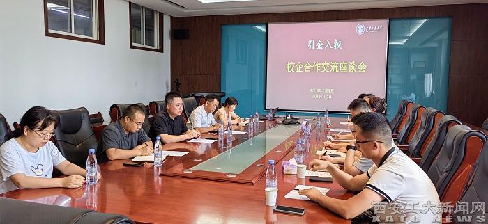 (本网讯)为扎实做好书记校长访企拓岗促就业专项行动,深化校企合作,促进毕业生高质量就业,7月12日,电信学院召开引企入校校企合作交流座谈会。西安工业大学党委副书记梁云鹤,电信学院党委书记易超、党委副书记王利军,陕西文都教育科技有限公司、苏州知行睿科技有限公司等5家企业领导及毕业班辅导员参加会议,会议由王利军主持。