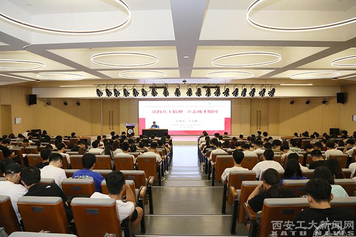 李金钢用丰富的历史资料和详实的数据,深入阐述了人民兵工的精神内涵,结合学校发展历史、先进事件和重要人物等内容确证了西安工业大学深厚的军工文化。并详细讲述了在学校的创建和发展中,西安工大人对兵工精神的继承和弘扬。李金钢鼓励西安工大学子厚植文化素养,传承红色基因,弘扬兵工精神,“带着穿越地平线的渴望”为实现中华民族伟大复兴贡献新时代青年的蓬勃力量。