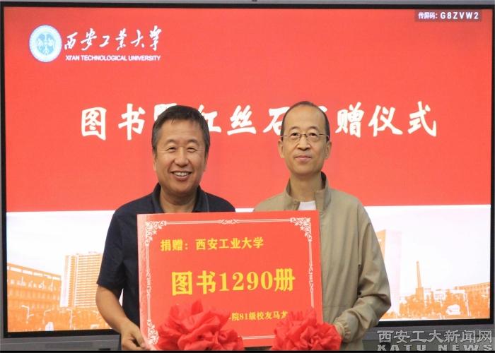 捐赠仪式上,校友总会办公室副主任周黎萍介绍了捐赠的基本情况。我校81级校友马龙向学校捐赠了图书1290册,总价达3万元。我校光电学院2021级研究生郎咸金同学及家人为学校捐赠了铭刻学校校风的红丝石1件,经加工雕刻的精美红丝砚22件,总价值达16万元。