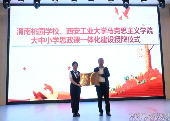 (本网讯)为统筹推进大中小学思政课一体化建设,构建“大思政”育人格局。9月22日,西安工业大学马克思主义学院和渭南桃园学校在西安工业大学开展了‘手拉手’大中小学思政课一体化建设结对授牌暨共建活动。