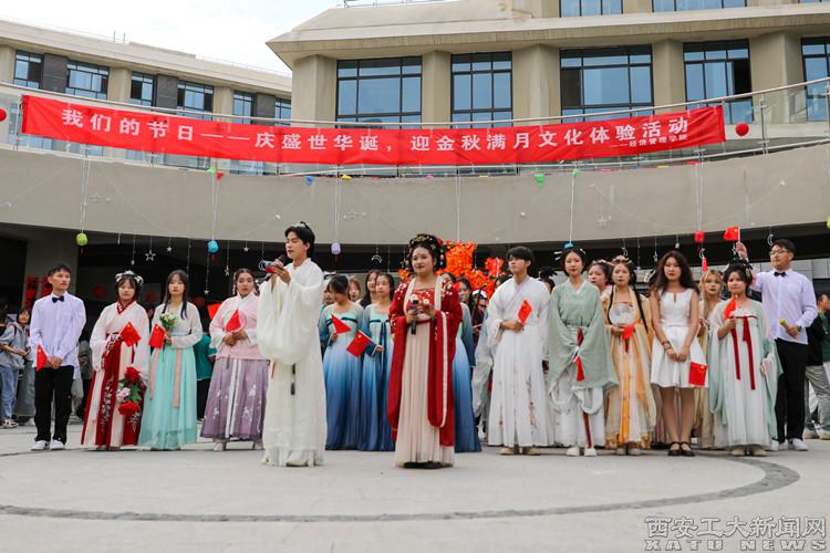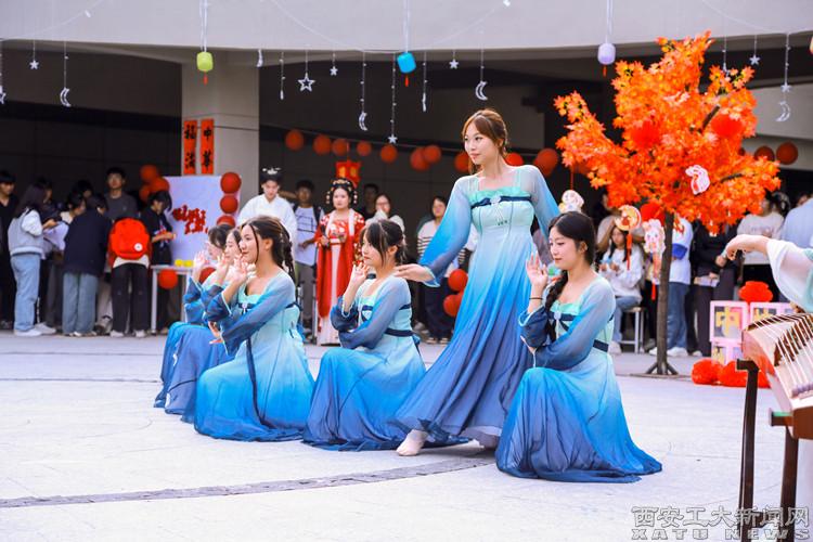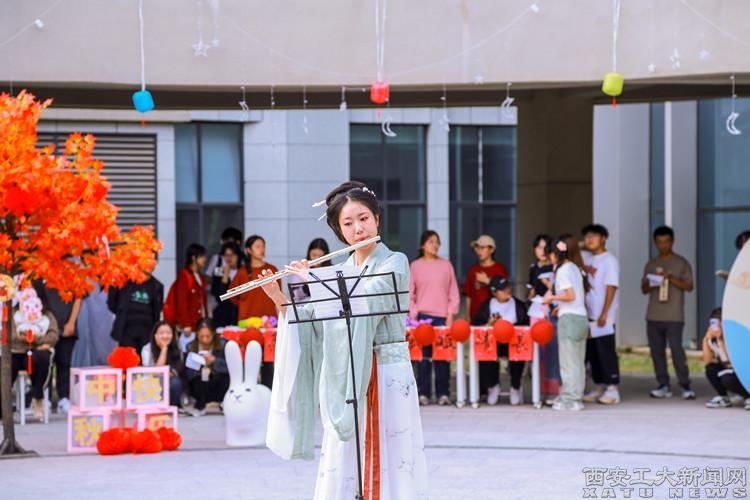 为弘扬中国传统文化,在文艺表演区域设置汉服走秀,进一步弘扬汉服文化。“急拨慢揉舒缓述,丝弦流露赞美情”,民乐表演者身着汉服演奏古筝、二胡等传统器乐,同时伴有《水调歌头》《燕归巢》等歌曲及舞曲,天籁之音久久萦绕。同学们纷纷分享自己中秋节的趣味经历,现场欢声笑语一片,充满了欢乐喜庆、温馨祥和的氛围。