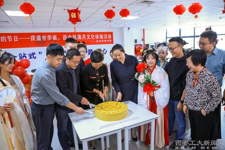 “一站式”学生社区服务中心大厅内设有飞花令、猜灯谜、手工月饼、手书祝福、抚琴邀月等活动环节。西工版“盛唐密盒宝藏男孩”用幽默风趣、生动形象的语言向在场师生讲解了中秋节的来历、起源及各种风俗,感受中华传统的无限魅力。手绘团圆展台上,经管学院会计学专业学生牛丽娟正在和小伙伴们用绘画展现中秋特色:“我画的是国画,用五颜六色的水彩画出对祖国的美好祝福,送出对中秋佳节的真挚祝福。”