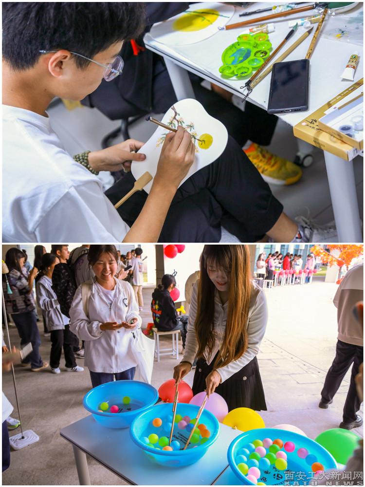 本次文化体验活动共设室内游艺、文艺表演、室外游艺三个部分。各游艺区展台前人头攒动,同学们纷纷体验带有中秋及国庆元素的活动,更进一步走进传统文化,寄托中秋美好祝福。