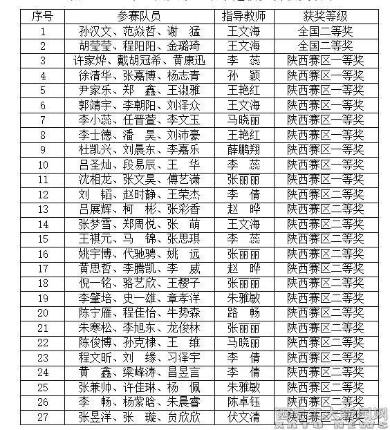 (本网讯)11月6日,2023年“高教社杯”全国大学生数学建模竞赛获奖名单公布,我校参赛53队,共获奖28项,其中全国二等奖2项,陕西赛区一等奖9项,二等奖16项,获奖数量再创新高。
