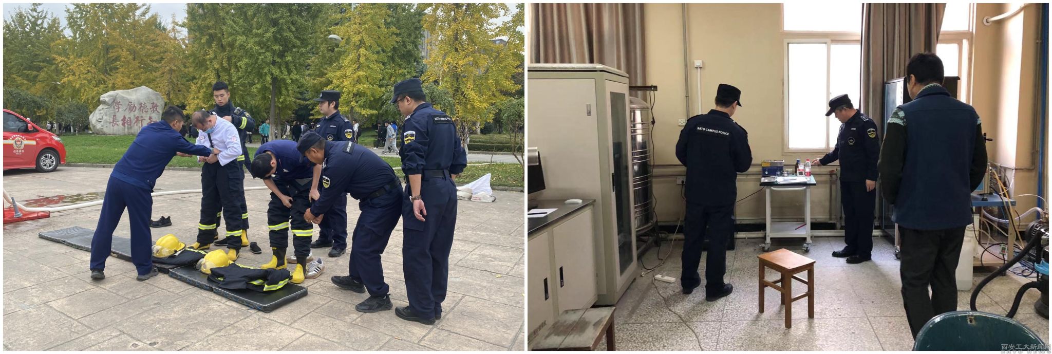 在开展消防安全宣教活动中,先后于11月8日和11月9日,邀请西安市消防救援支队专家来校授课和组织消防应急演练。授课专家结合火灾案例,按照“预防为主、防消结合”的原则,对人员密集场所火灾预防、火灾危险性分析、消防器材的使用方法、火场逃生自救等方面进行了细致生动的讲解。校内各重点防火部位、学工部、研工部、总务处、资产公司等单位600余名师生员工参与。
