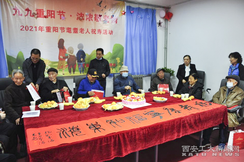 (本网讯)年年岁岁贺重阳,桑榆未晚桂犹香。为弘扬中华民族“尊老、敬老、爱老”的传统美德,10月14日“重阳节”上午,离退休工作处举办了以“九九重阳节 浓浓敬老情”为主题的重阳节耄耋老人祝寿活动,向各位老寿星致以崇高敬意和诚挚的节日祝福,感谢离退休老同志为学校作出的贡献,并祝愿寿星们度过一个健康安详的晚年。7位90岁以上的老寿星参加了此次活动。
