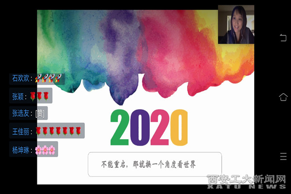 (本网讯)4月5日,西安工业大学知名校友王静在美国洛杉矶连线西安工大经管学院千余名师生,带来了一场精彩的讲座——“2020,不能重启,那就换一个角度看世界”。经管学院全体学工干部、研究生、本科生等千余人在线聆听。