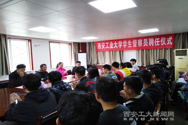 (本网讯)10月21日,总务处、校团委举行西安工业大学学生督察员换届聘任仪式,仪式由总务处公寓管理科高磊主持。