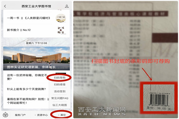 7月27日至30日将面向社会大众开放,届时我校师生可自行前往参观,如有需求的专业类书籍可以通过西安工业大学图书馆微信公众号进行扫码荐购,荐购方式如下: