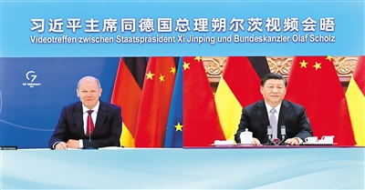 国家主席习近平5月9日下午同德国总理朔尔茨举行视频会晤。